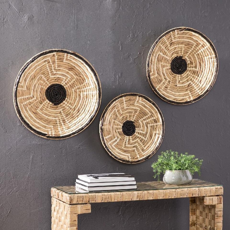 Eco-friendly Handicrafts Wall Hangings Water Hyacinth Seagrass Wall Decor Art Rattan Plates Living Room Home Decoration Items
