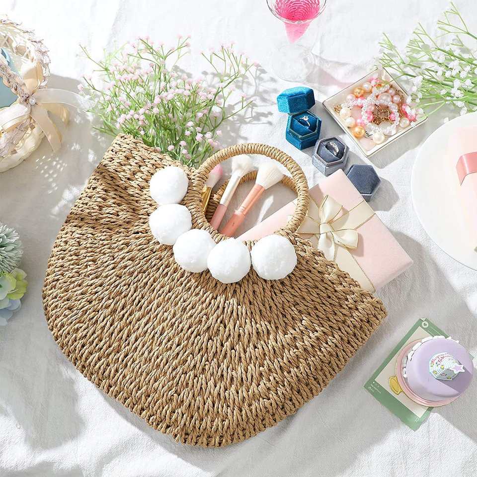 Eco-friendly Handmade Woven Women Bohemian Summer Straw Beach Handbag for Travel Shopping Female Tote Rattan Wicker Bags