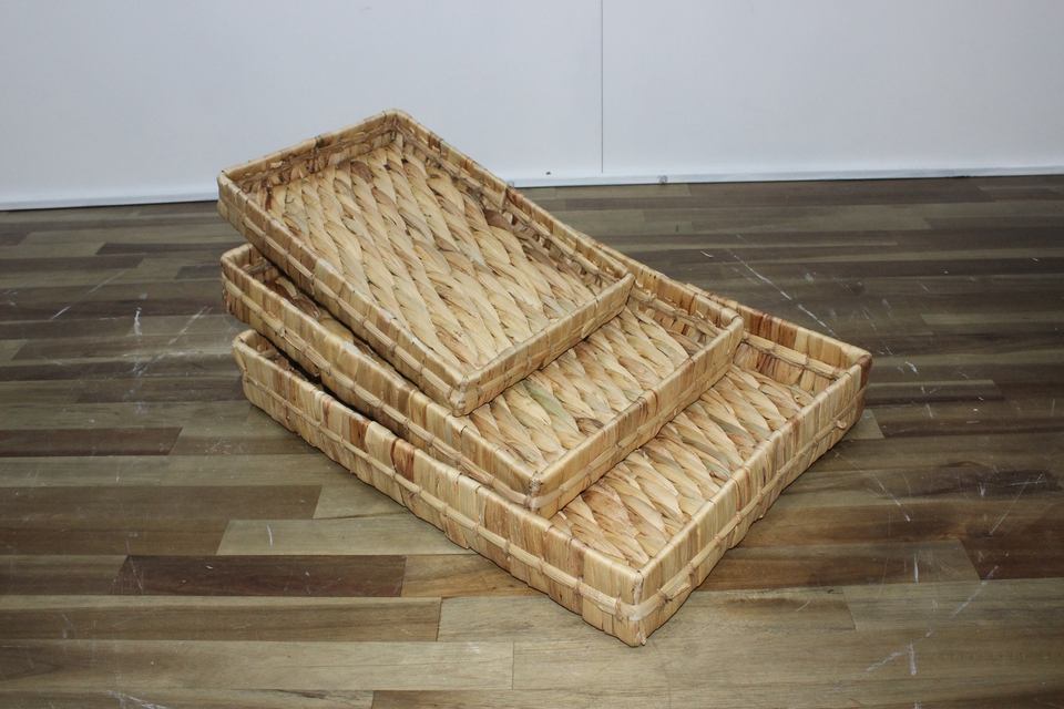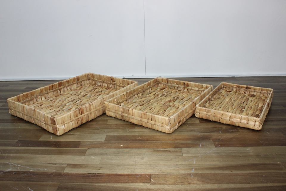 Eco-friendly Handwoven Water Hyacinth Storage Baskets Portable Stylish Wicker Tray for Home Storage