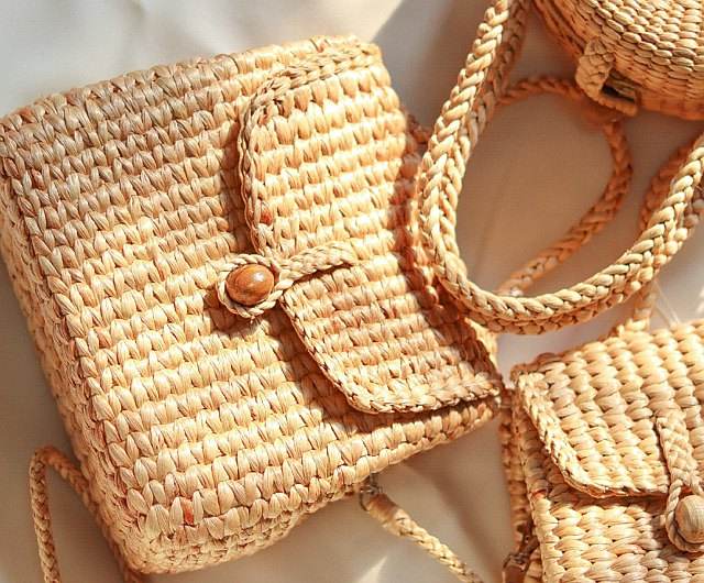 High Fashion Eco-friendly Women's Summer Beach Clutch Water Hyacinth PC Straw Zipper Closure Cotton Custom Natural Tassel Chains