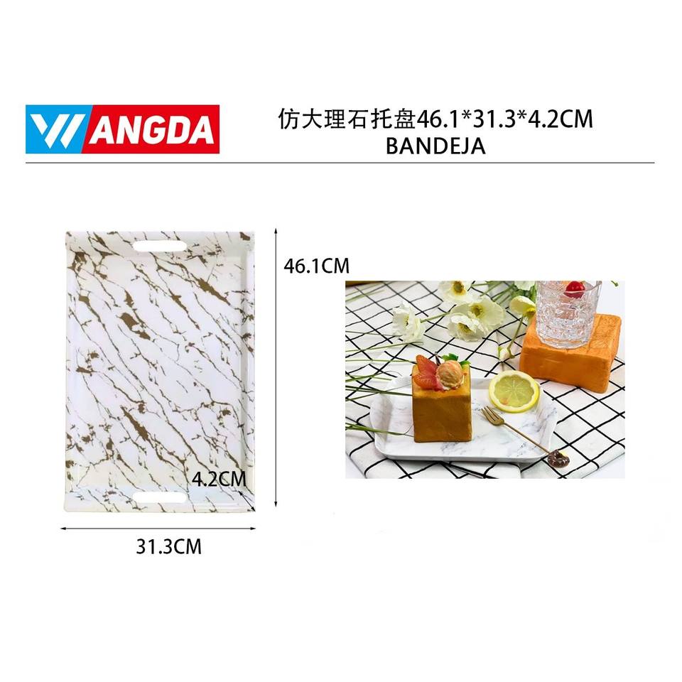 Eco-friendly Imitation Marble Decor Tray 46.1*31.3*4.2CM Rectangle Serving Tray for Home and Kitchen Food Serving