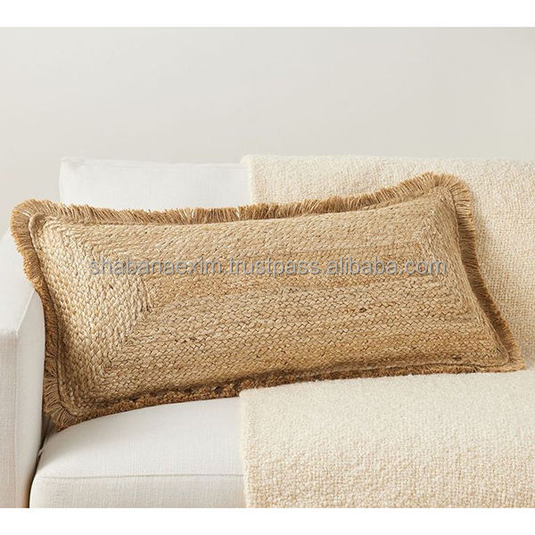 Eco-friendly Jute Cushion Cover with Fringe Handmade Cushion Cover Indoor Outdoor Decoration for Home, Hotel From India