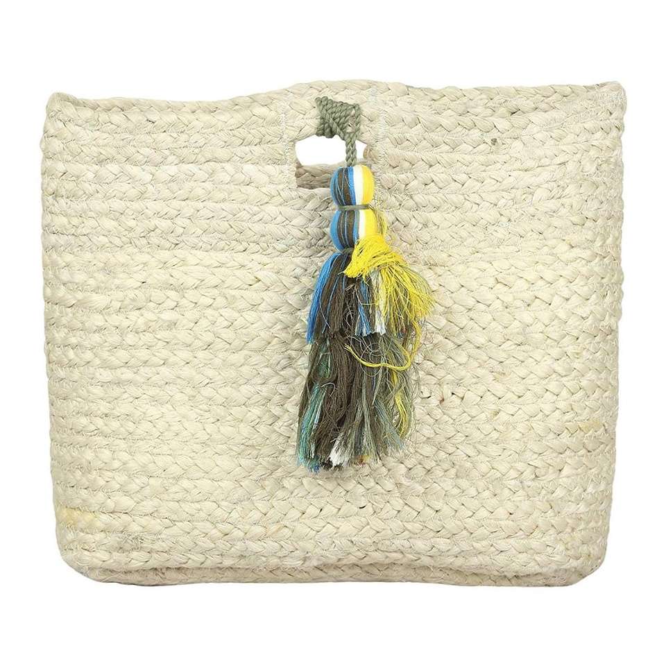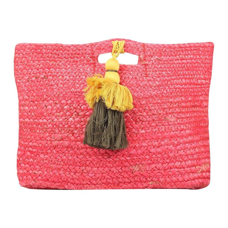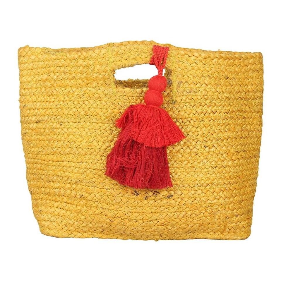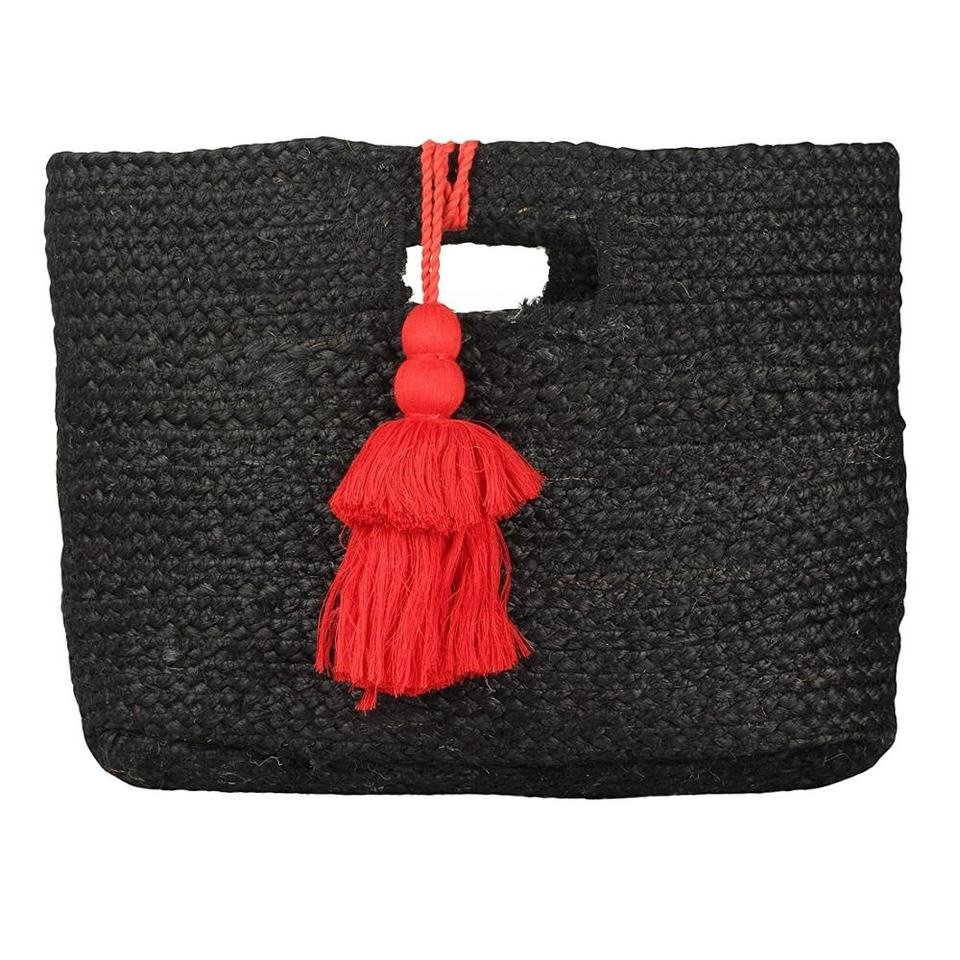 Eco-friendly Jute Handmade Indian Black Handbag with Red Tassel