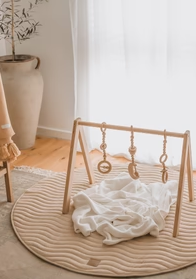 Eco-friendly Montessori Bamboo Wood Baby Play Gym With Mats for Baby Activity Gym Frame With Baby Gym Hanging Toys