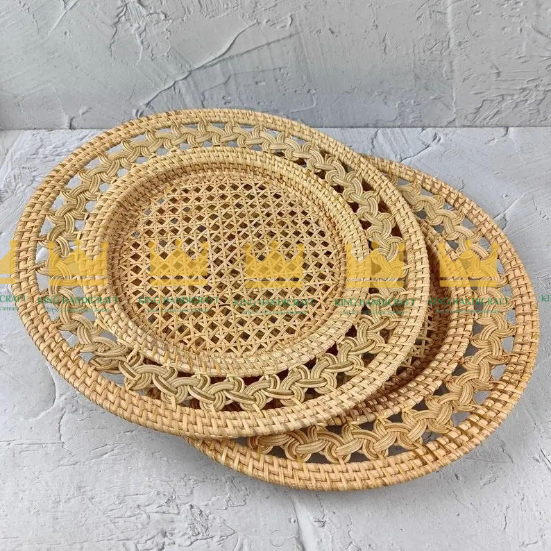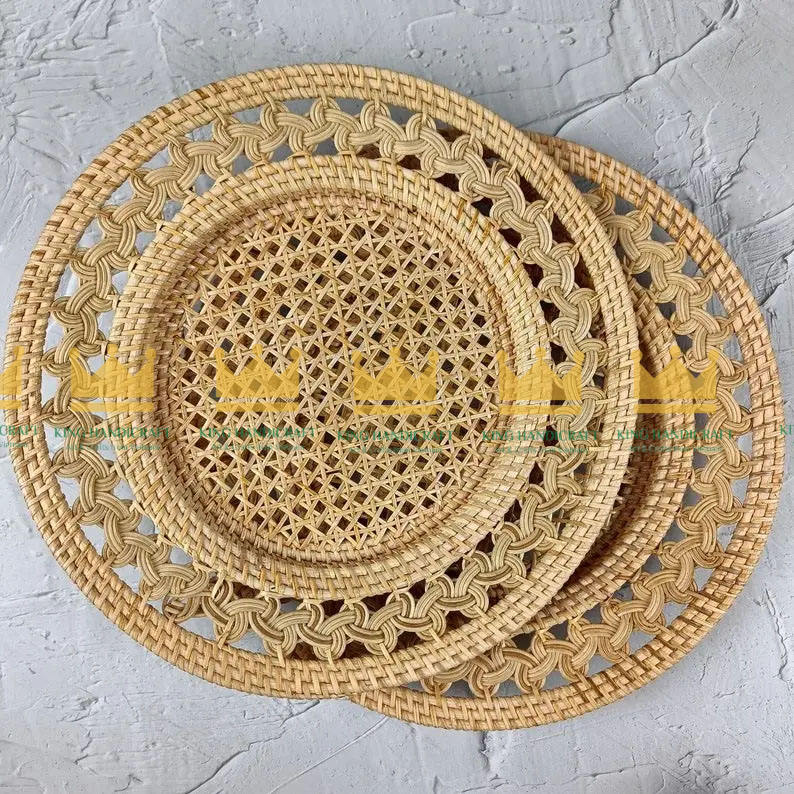 Eco-friendly Natural Bamboo Rattan Woven Placemat Flower/Modern Style Home Restaurant Use Wedding Party Charger Plate Wholesale