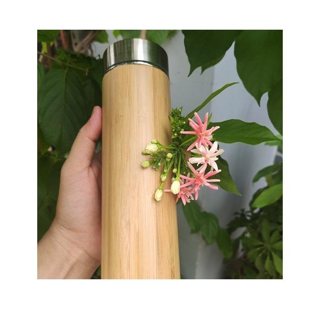 Eco-friendly Natural Bamboo Thermos Vacuum Flask with Tea Filter Custom Logo Wooden Thermos