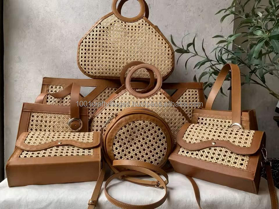 Eco-friendly Natural Rattan Straw Handbag Handmade Durable Lightweight Zipper Shoulder Strap Vietnam Resort Boutique Wholesale