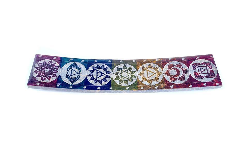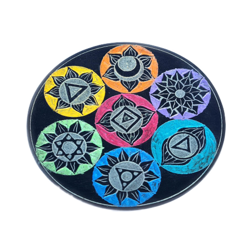 Eco-friendly Natural Stone Soapstone Perfume Lamp Black Rainbow Colors Seven Sapta Chakra Design Incense Plate Stick Holder