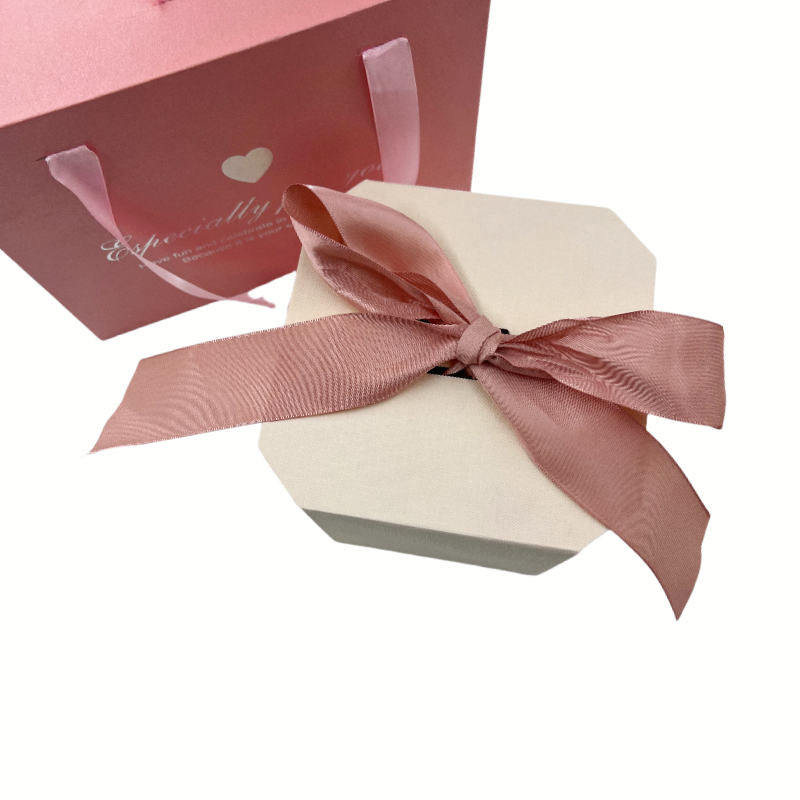 Eco-friendly Hard Rigid Cardboard Gift Box for Jewelry Rings & Earrings Watch Packaging Pink Ribbons with Sponge Liner