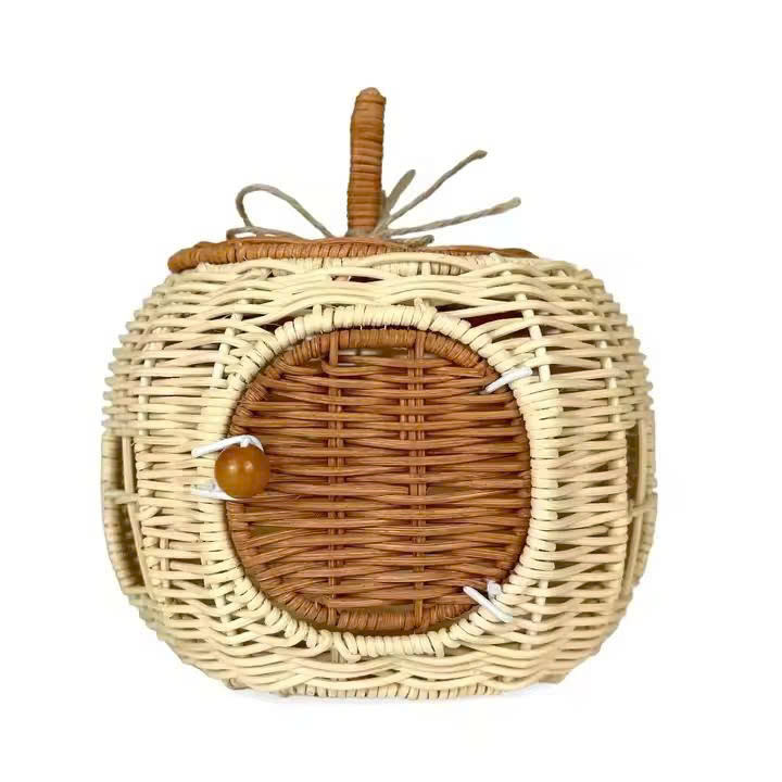 Eco-friendly Rattan Pumpkin Basket Handmade Natural Pumpkin Sleeping Bag Halloween for Halloween and Seasonal Fall Decorations