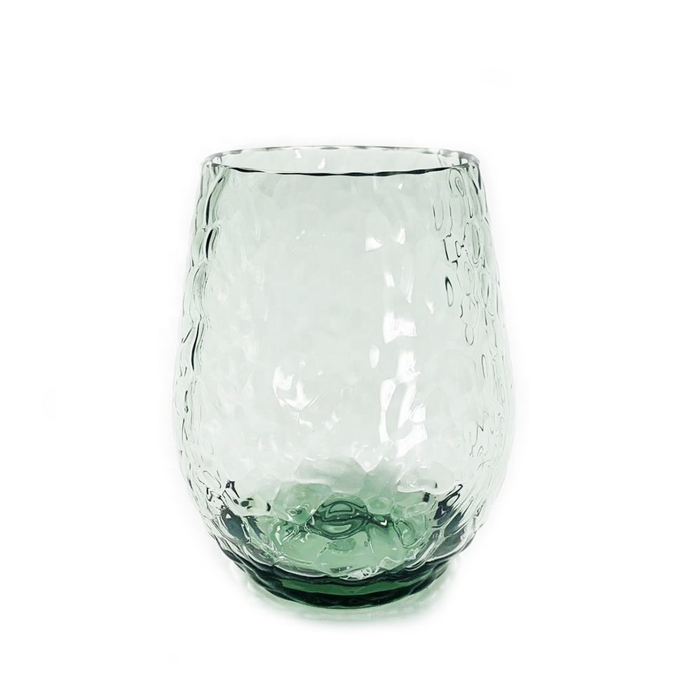 Eco-friendly Shatterproof 20oz Acrylic Hammered Stemless Wine Glasses