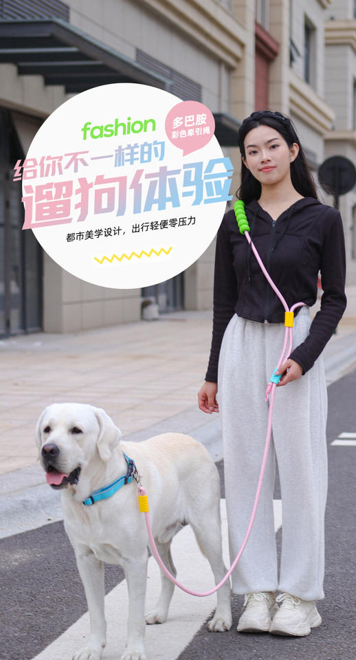 Eco-friendly Solid Colorful Pet P-Leash with Nylon Scarf and Poop Bag Holder-Dog Lead