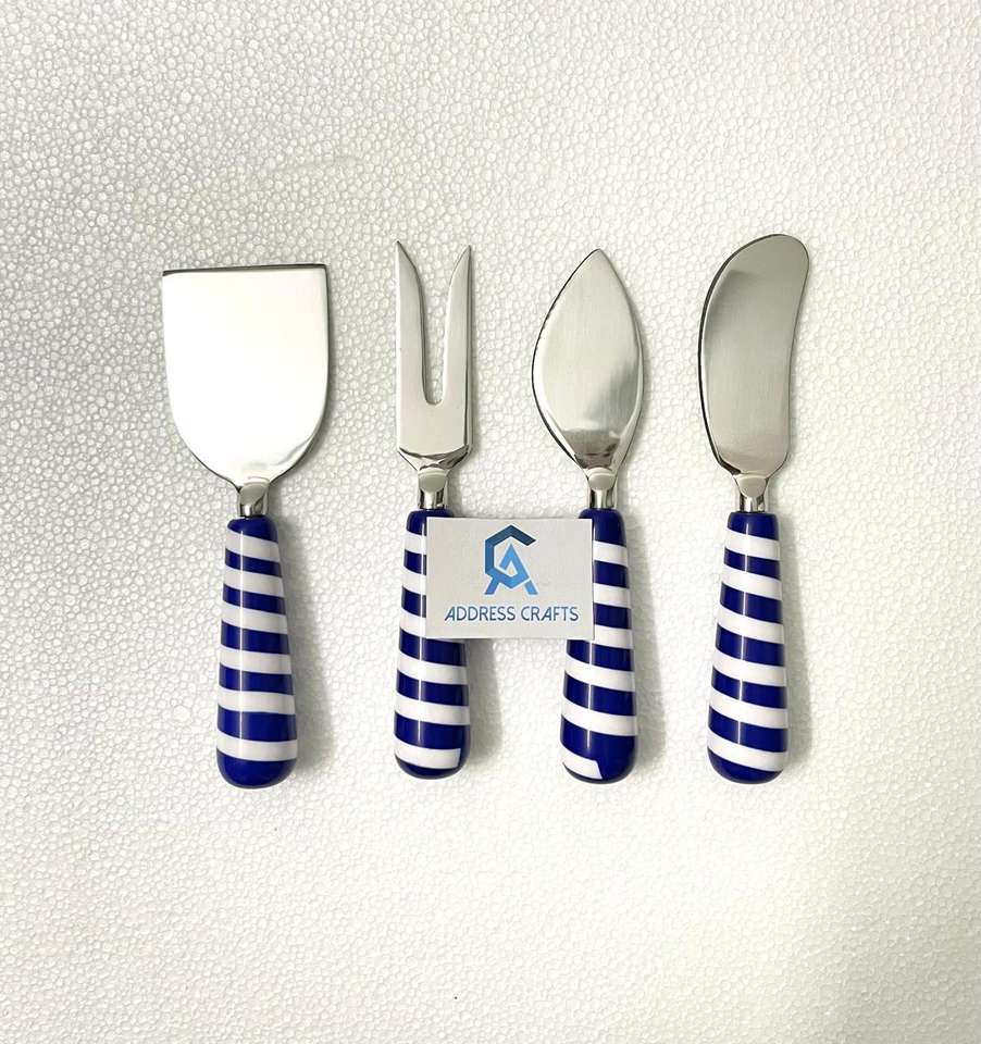 Eco-friendly Stainless Steel White & Blue Color Resin Handle Butter Knifes Set Table Decorate Dinner Used Silverware Cheese Set