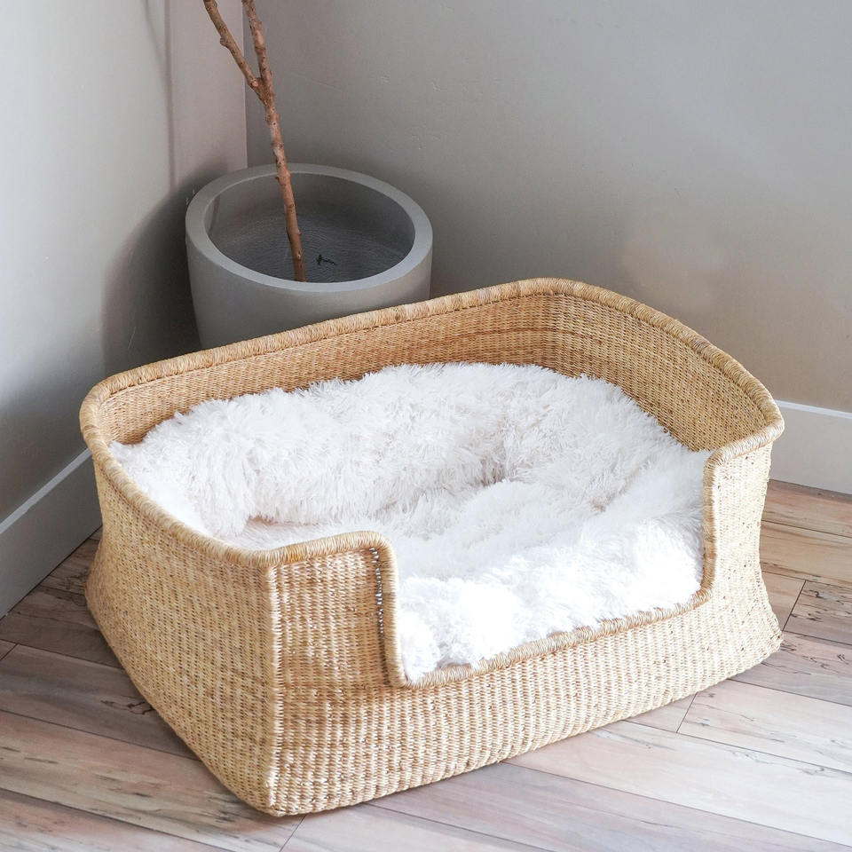Eco-friendly Straw Pet Bed Basket Cat Sleeping Nest with Comfy Cushion Wholesale Natural Seagrass Sofa for Pets