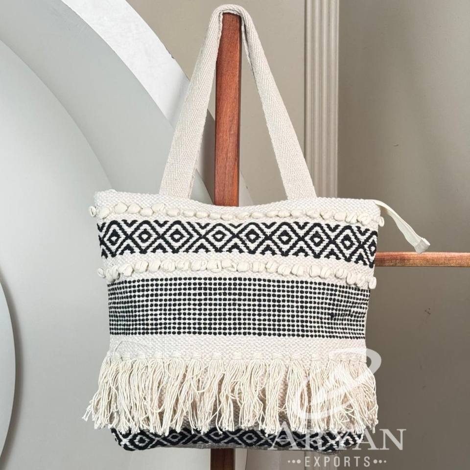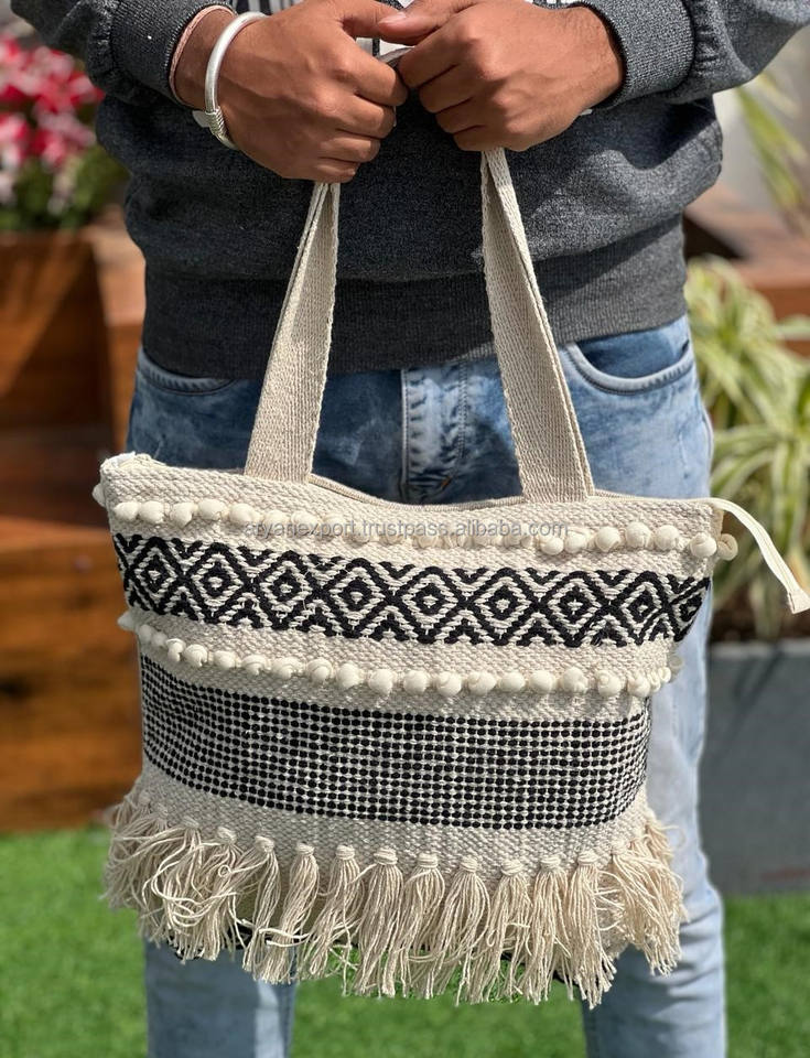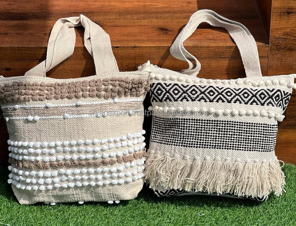 Eco-friendly Sustainable Woven Hemp Tote Bag for Women Natural Cotton Handbag Vegan Multi-Use Holiday & Shopping Bag in Fashion