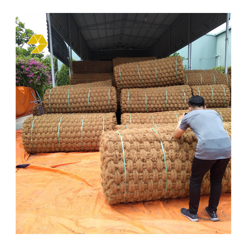 Eco-friendly Vietnam Long Large Coconut Coir Mat Roll With Customized Size for Road Paving in Park and Mountain Prevent Slip