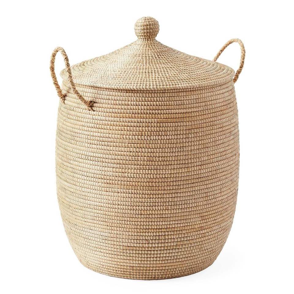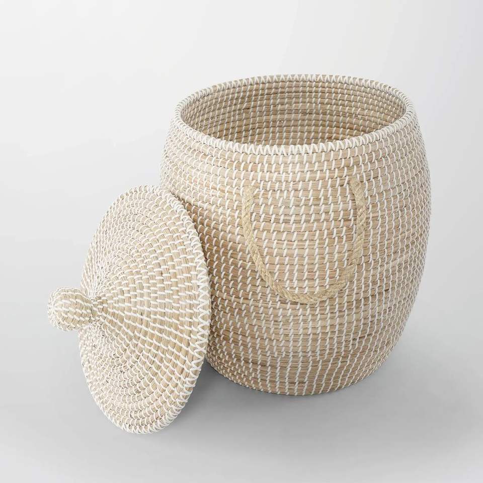 Eco-friendly Vietnam Proofing Rustic Seagrass Basket Colorful Handwoven Laundry Basket For Home Organization