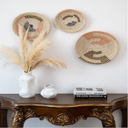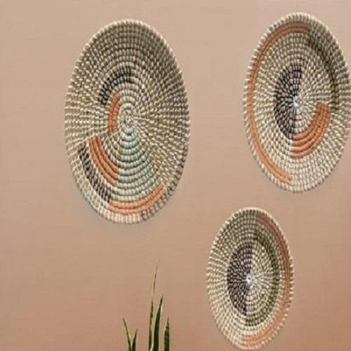 Handwoven Eco-friendly Art Deco Wall Decorative Baskets Nature-Themed Colored Bamboo Woven Seagrass Wall Hanging for Kids Room