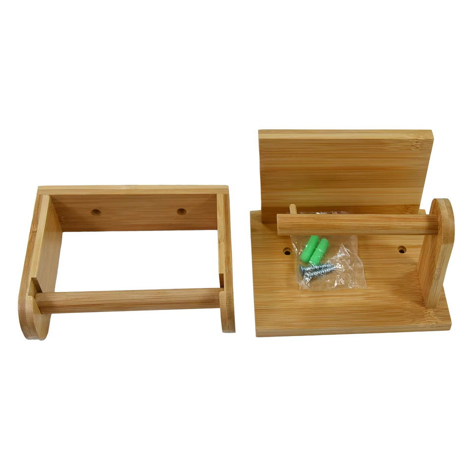 Eco-Friendly Bamboo Toilet Roll and Phone Shelf Wall-Mounted Tissue Box Paper Towel Holder for Living Room Mobile Accessory