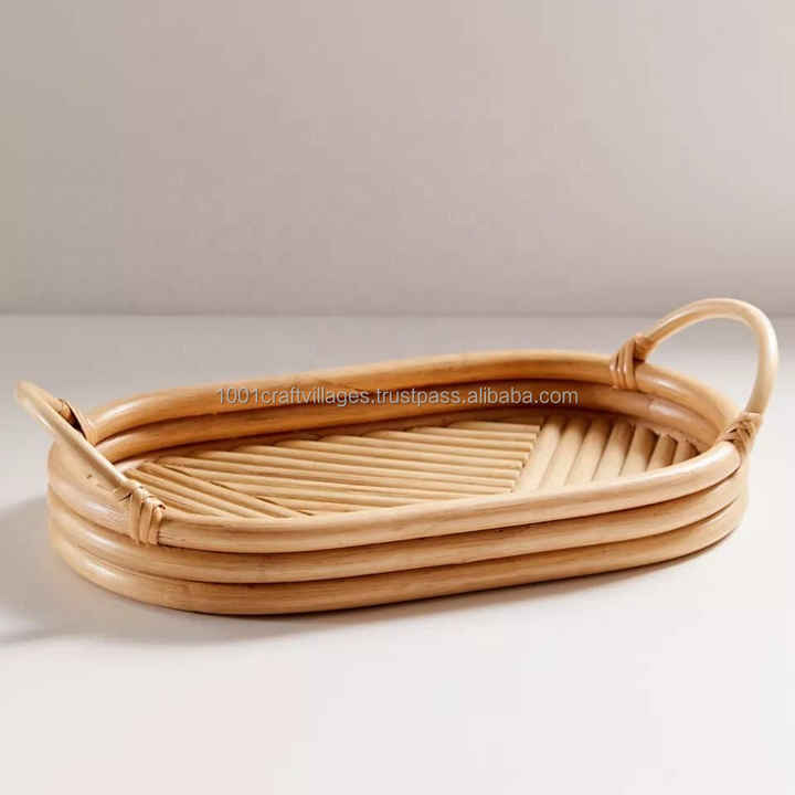Eco-friendly Wholesale Durable Lightweight Rattan Tray Manufacturer Handmade Natural Multipurpose Serving Tray From Vietnam