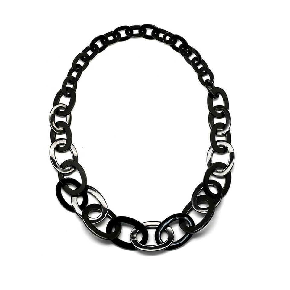 Unisex Eco-Friendly Buffalo Horn Link Chain Necklace Unique Number Diamond Main Stone Hot Sale Anniversary Fashion Jewelry
