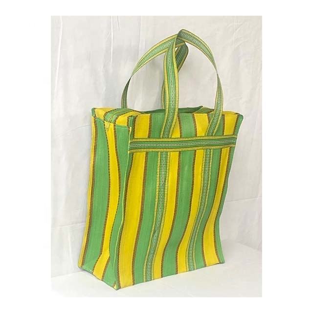 Custom Printed Eco-Friendly Striped Nylon Shopping Tote Bags Zipper Top with Recycled Material Market Bag with Custom Logo