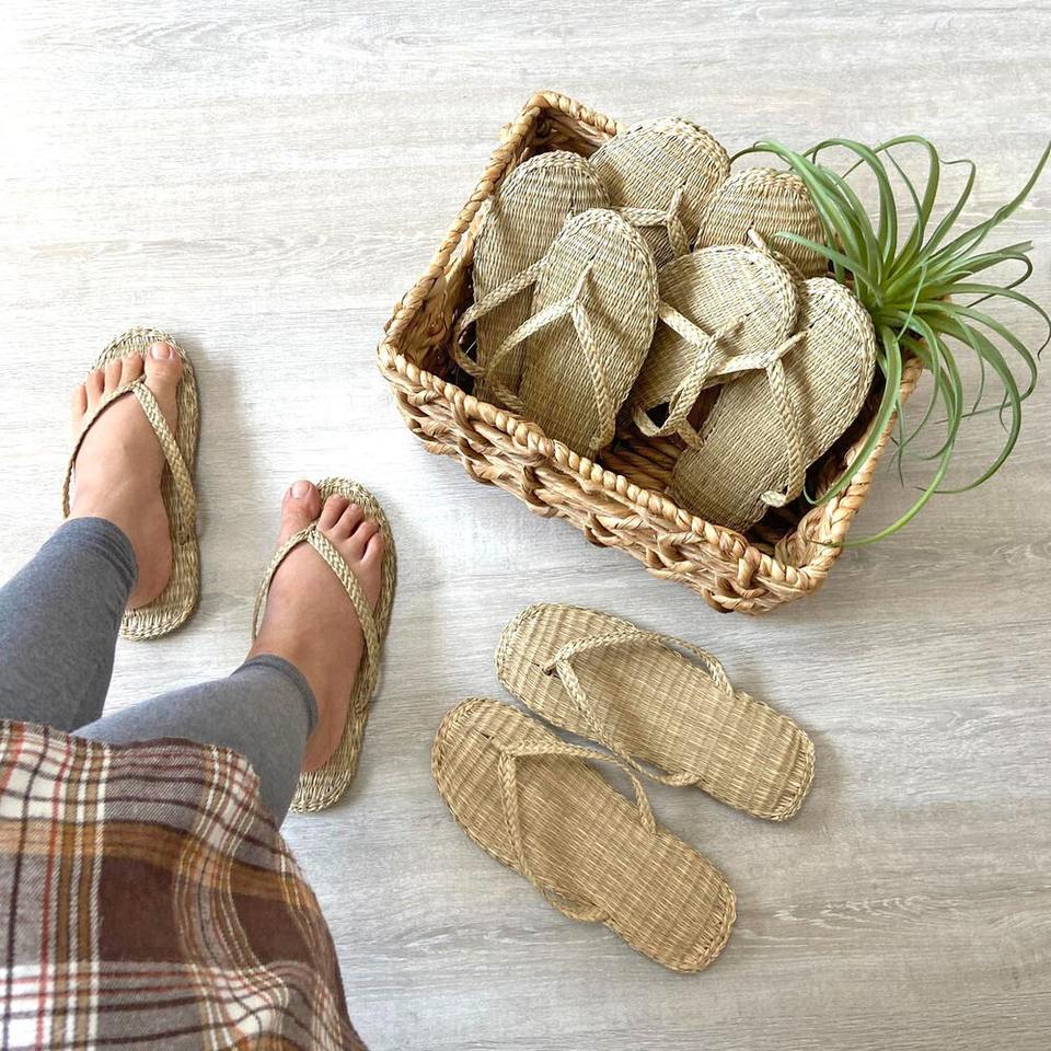 Eco friendly seagrass women men flip-flops natural straw flip flops for boys and girls lowest price