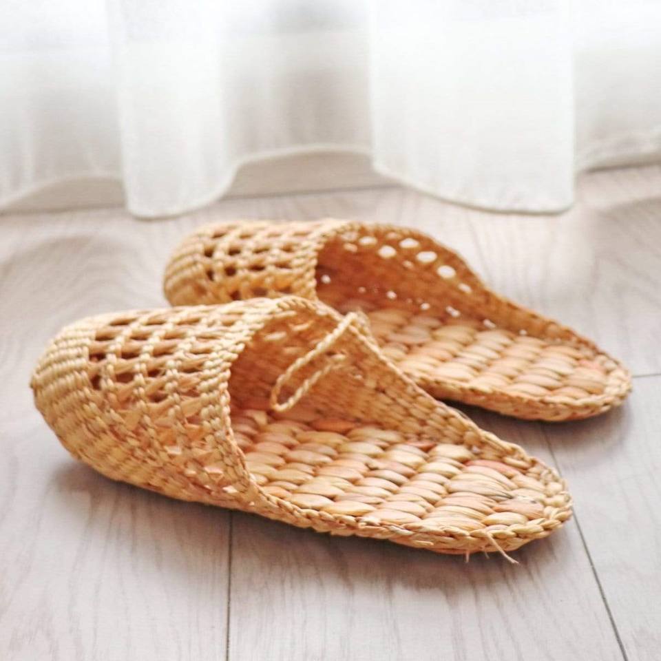 Eco friendly water hyacinth slippers cheap cost handbraided slipper slide sandals for home hotels