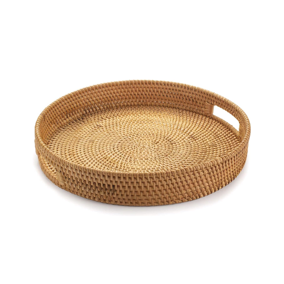 Eco-friendly wicker rattan round dry fruit serving tray Bohemian ottoman tray with handles wholesale low moq from Vietnam