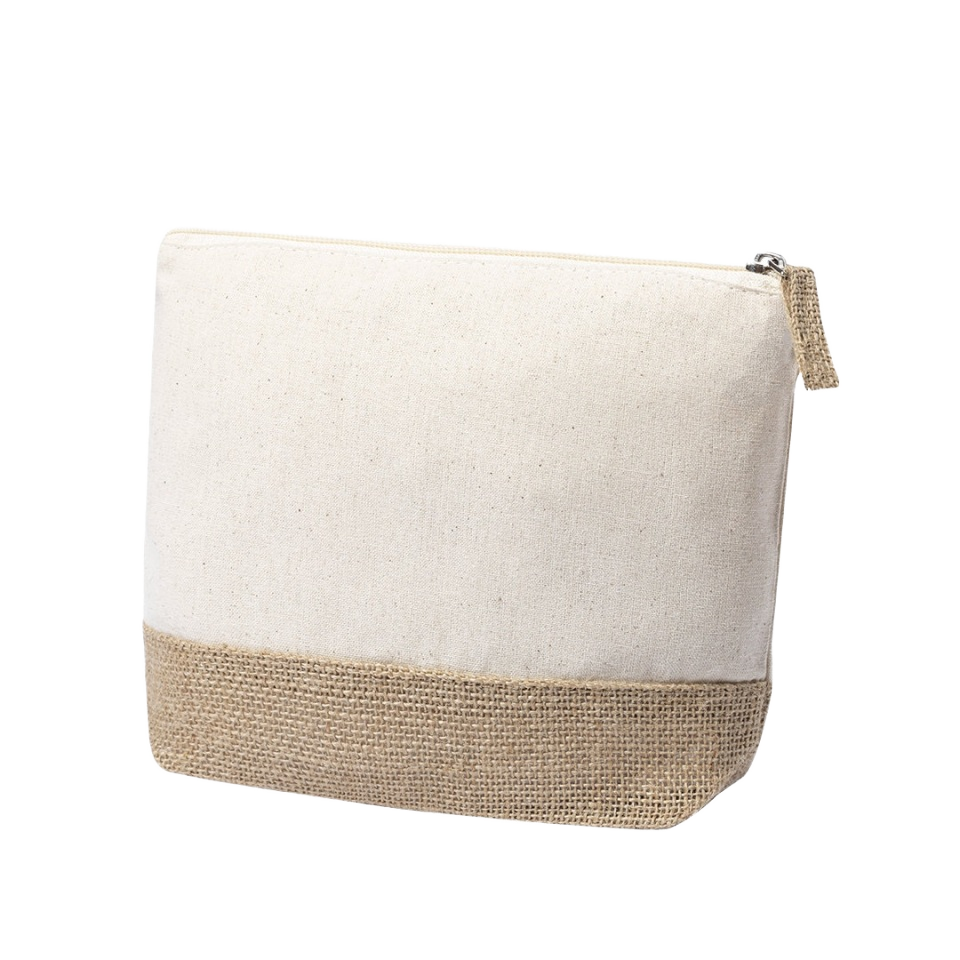 Eco travel pouch laminated jute cotton canvas makeup bag
