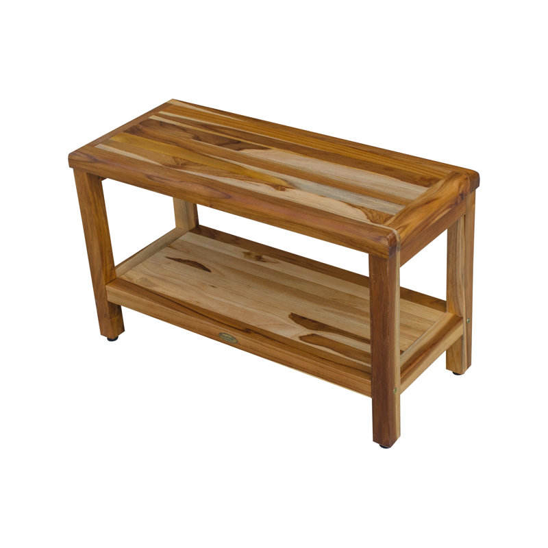 EcoDecors Eleganto 30-inch Classic Teak Shower Bench Shelf Eco-Friendly Patio Teak Shower Stool/Seat Elegant Shower Accessory