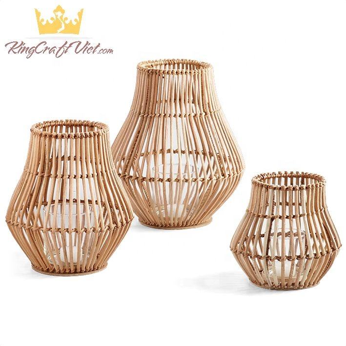 Ecofriendly Natural Woven Bamboo Candle Jars Lantern with Handles Rattan Table Lamp Rattan Candle Holder Wedding Event Garden