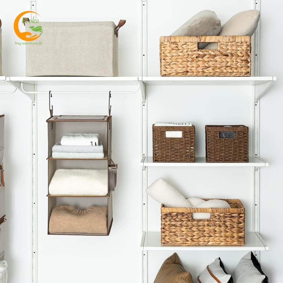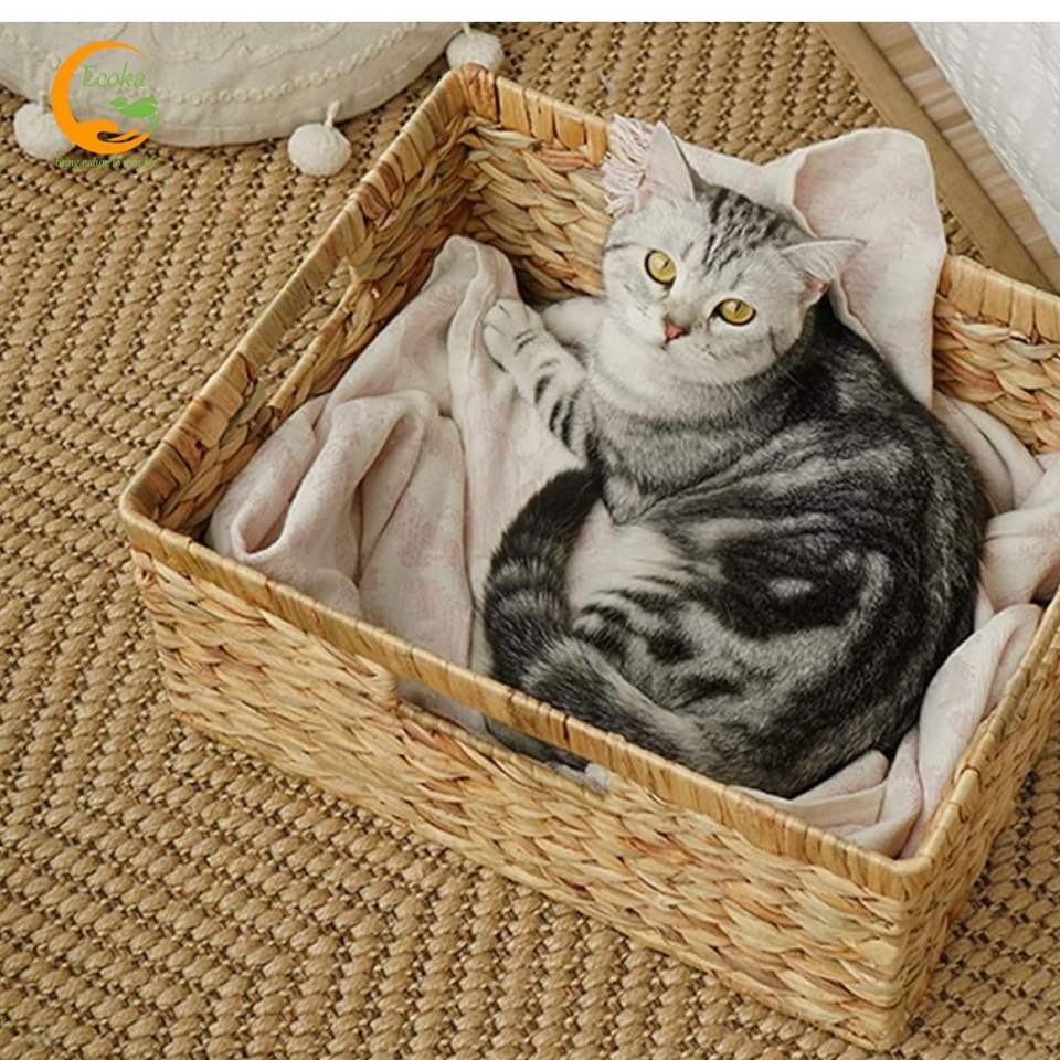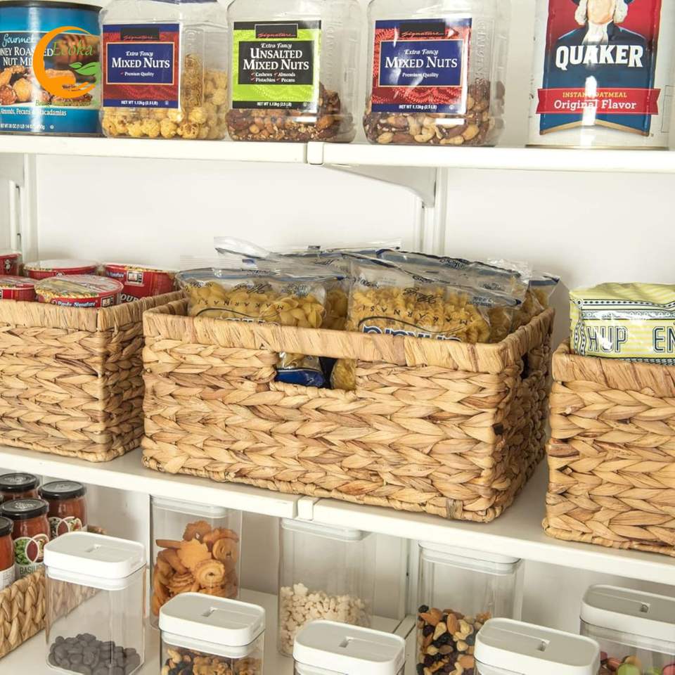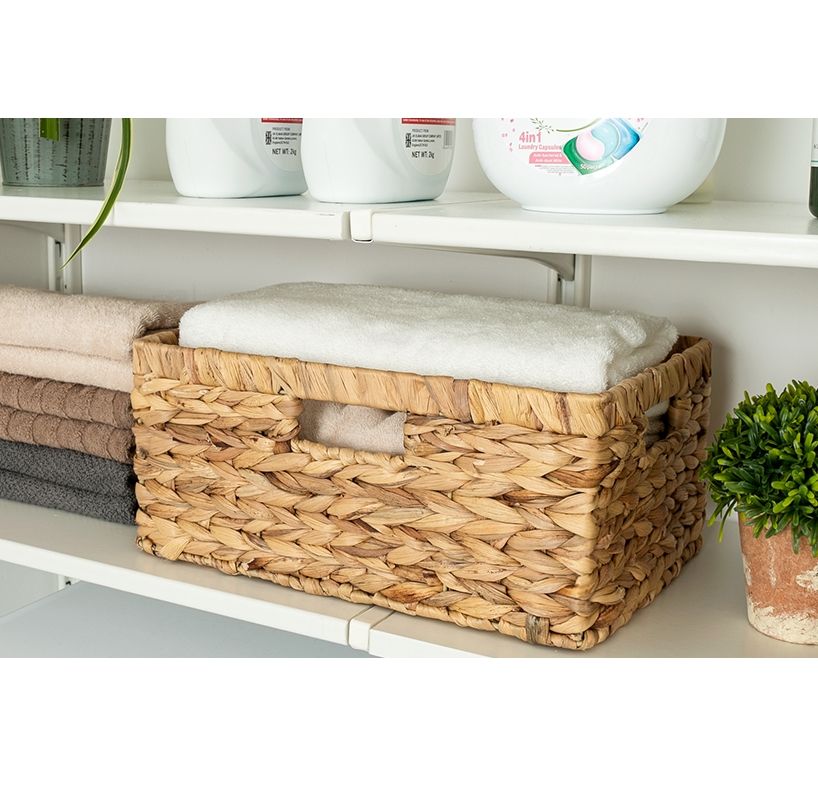 Ecoka Eco-Friendly Folding Handwoven Modern Rectangle Water Hyacinth Storage Basket Built-in Handles Multi-Purpose Organization