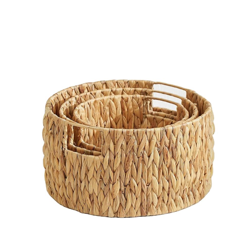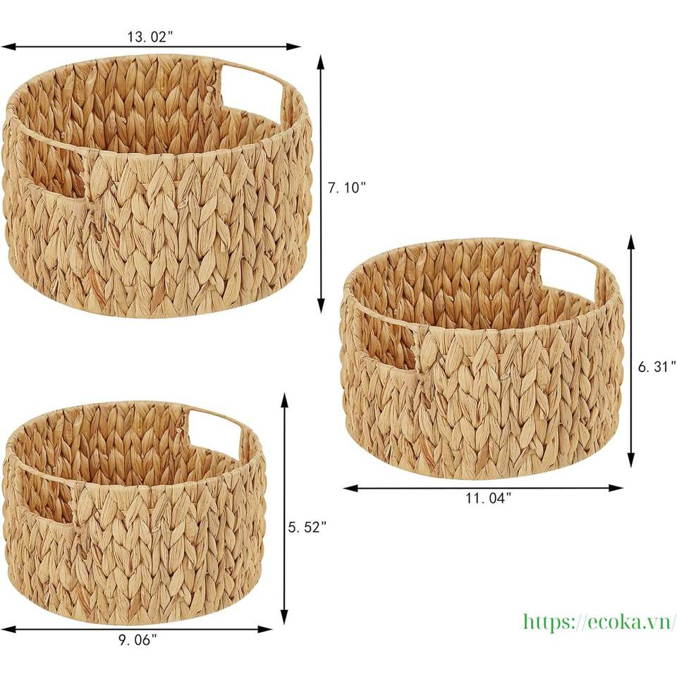 Ecoka Set 3 Handwoven Natural Wicker Water Hyacinth Material Eco-Friendly Multifunction Storage Baskets Handle for Living Room
