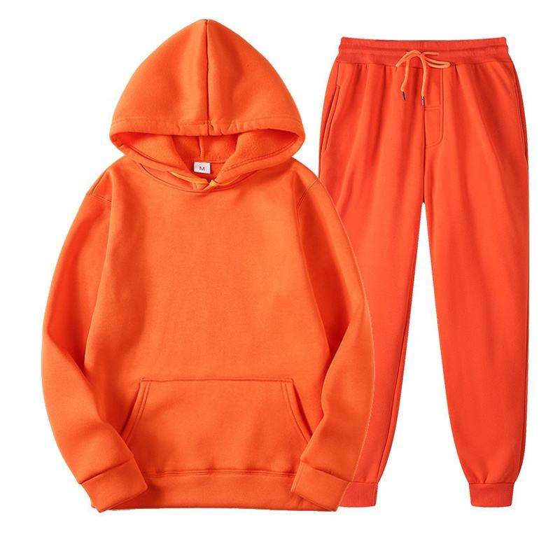 Econex Sports 2024 Casual Men's Streetwear Hooded Tracksuit Solid Print Two-Piece Spring Autumn Jacket and Pants Set