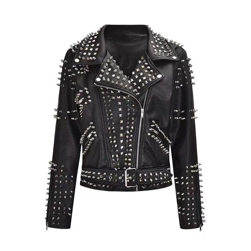 Econex Sports 2025 Women's Leather Jacket Slim Short Streetwear Gothic Embroidery PU Leather Locomotive Coat for Girls