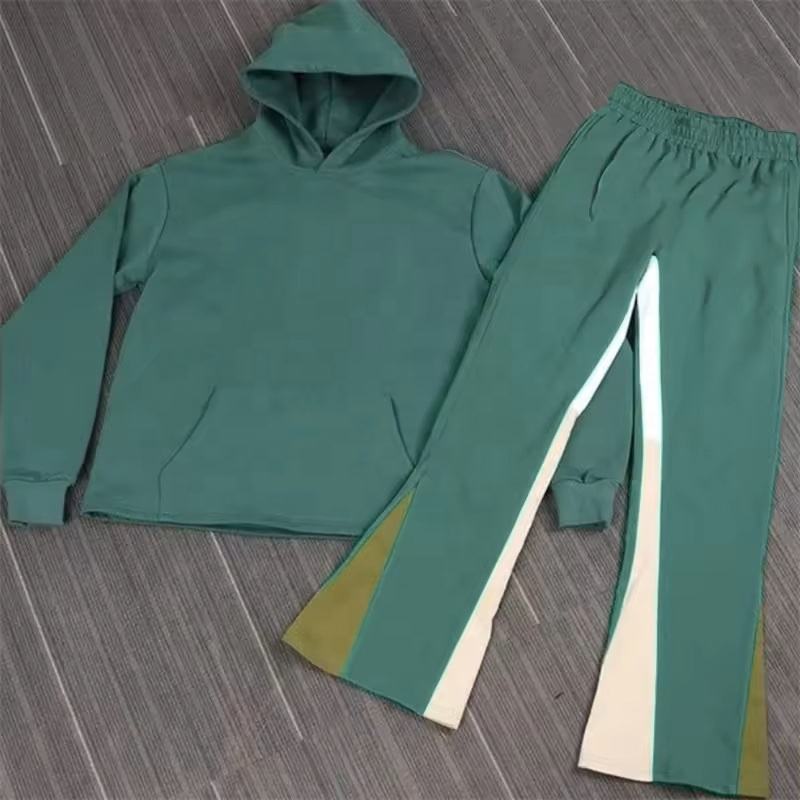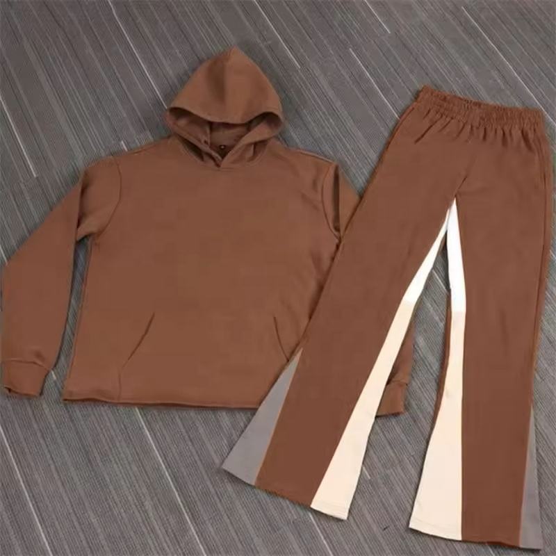 Econex Sports 2025Custom 100% Cotton 3D Puff Print Hoodie Fleece Baggy Stacked Flared Sweatpantsand Hoodie Set Custom Sweat Suit