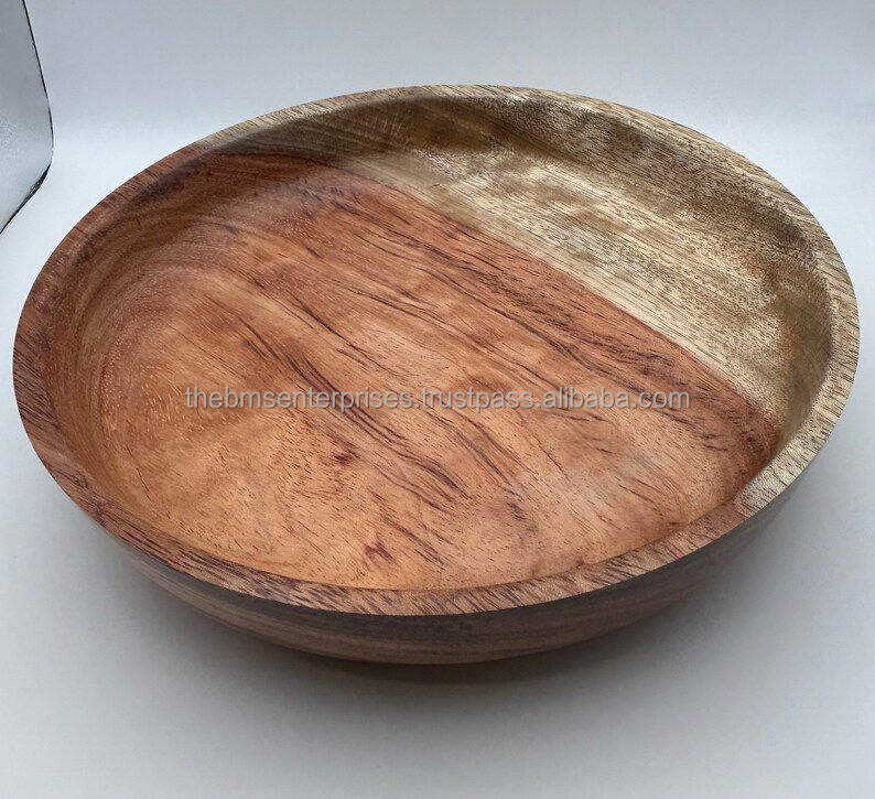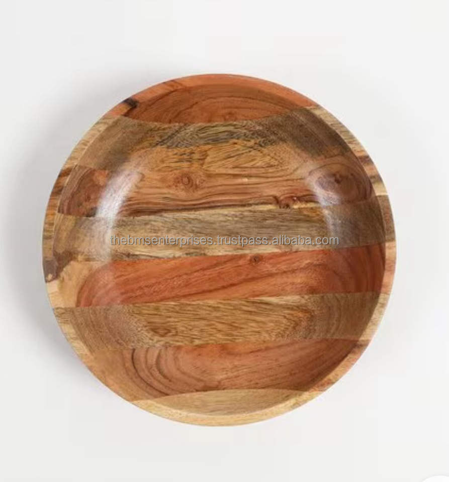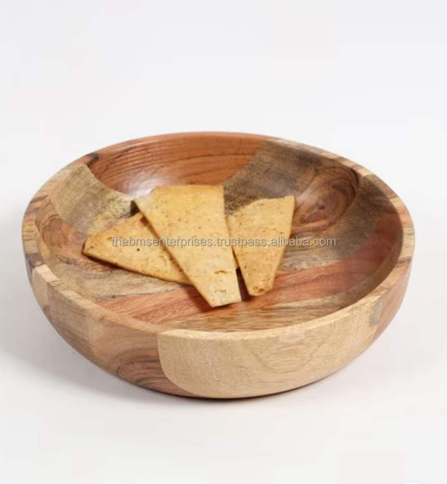 Economical Trendy Handmade Flat Bottom Wooden Salad Bowl with Wooden Joint for Salad Soup and Snack