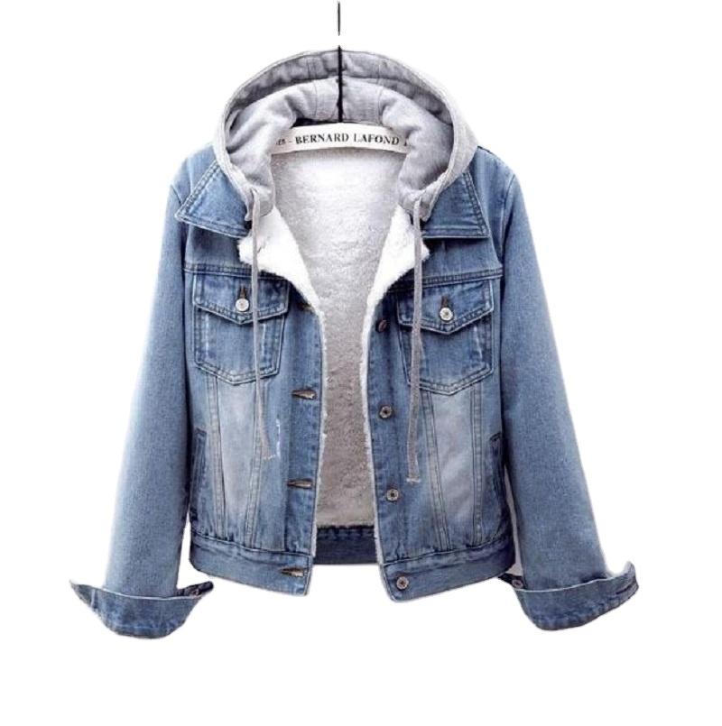 Ecoparty Women's Denim Jacket Short European and American Korean Style Long-sleeved Slim Hooded Jacket All-match Blouse Women