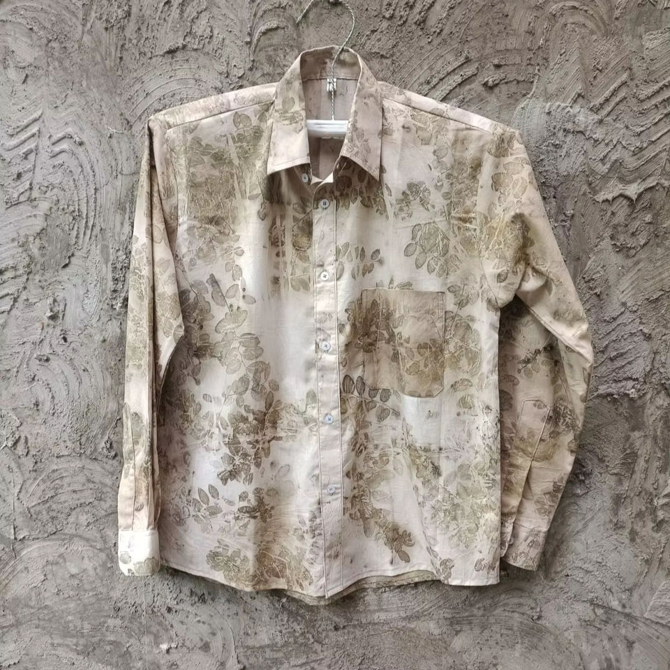 Ecoprint Men's Cotton Shirt with Leopard Pattern