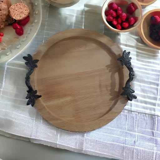 Ecowoodies Rounded Handmade Breakfast Wooden Bamboo Tray Eco-friendly Decorative Elegant Large Capacity Bread Food Storage