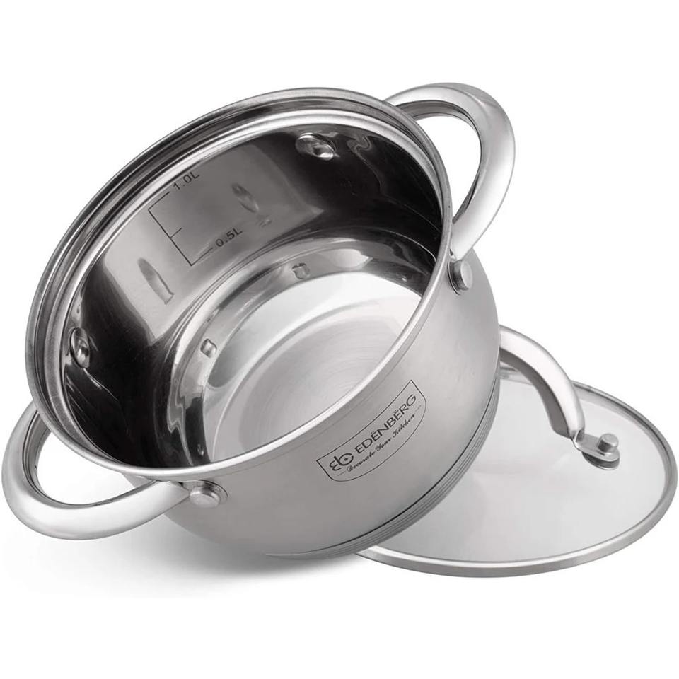 Edenberg 12-Piece Stainless Steel Kitchen Cookware Set with 6 Pots and 6 Glass Lids Custom Logo for Home Cooking