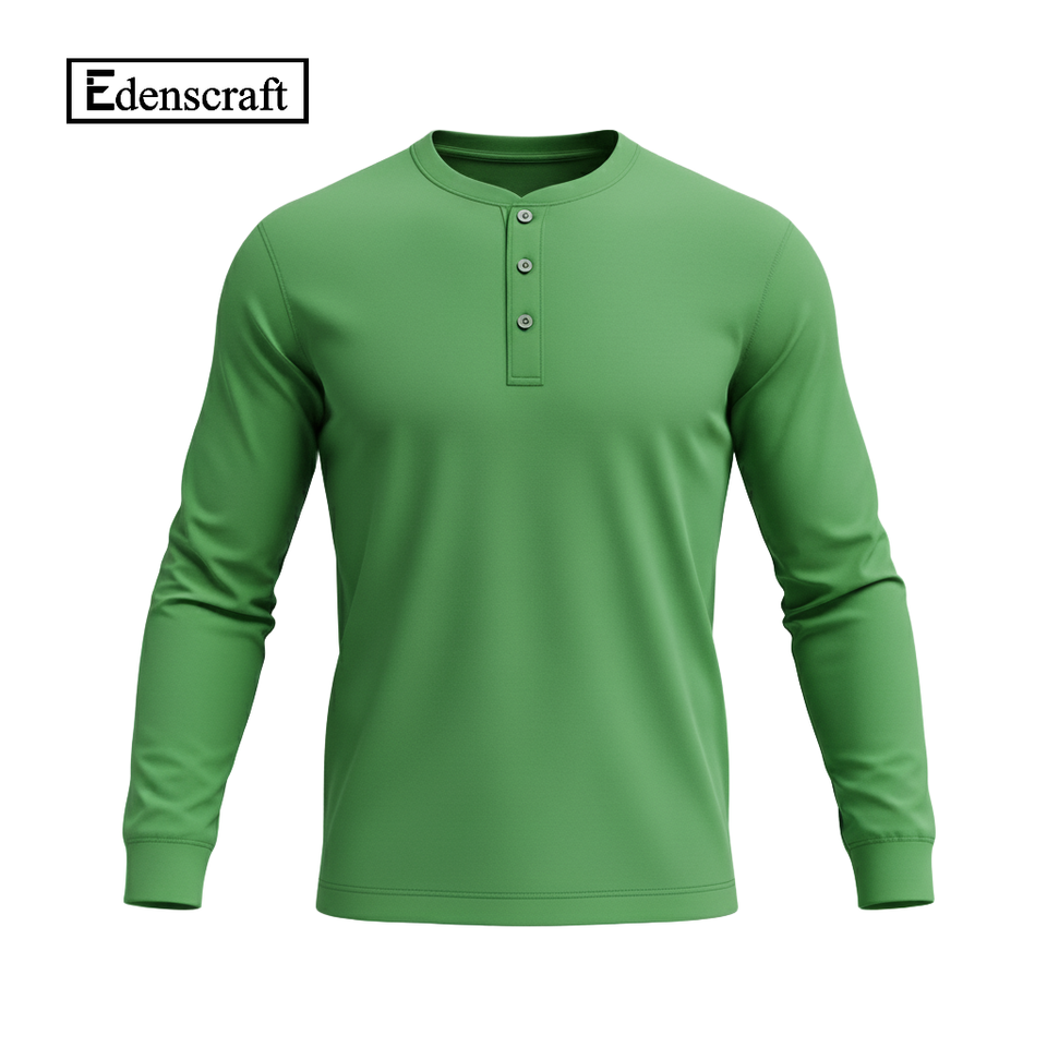 Edenscraft European Tailored Men Full Sleeve Green Yarn Dyed Henley Button Neck Sporty Eco-Friendly Anti-Pilling Luxury Cotton