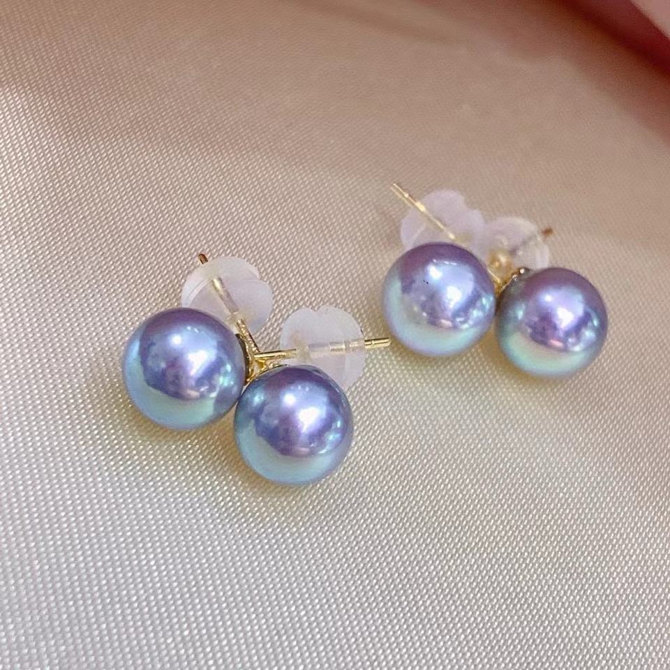 Edison 11-10mm Large Beads 7-6mm Small Beads 18k Gold Double Bead Earrings with Strong Light Quality Mirror Pearls for Dual Use