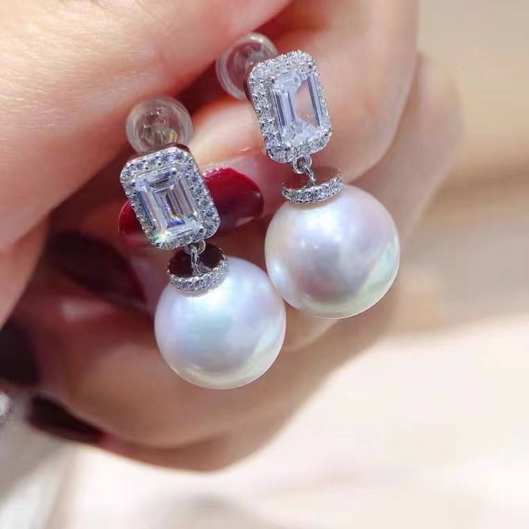 Edison Freshwater Pearl Earrings 11-12mm S925 Pure Silver Full Body Imported Hao Shi Inlaid Fine Dangle Style