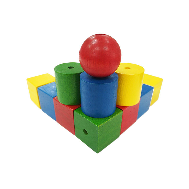 wooden toys 4 color 3 shapes: Cube, barrel, round jewelry beads