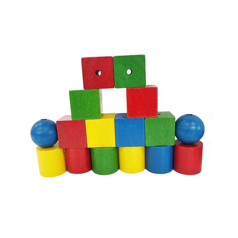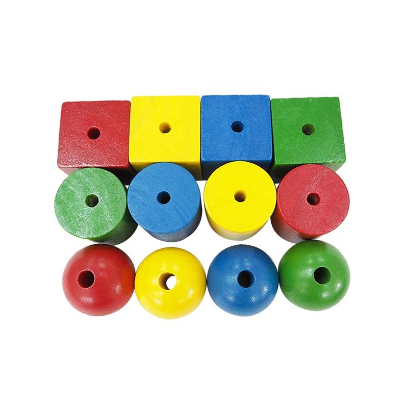Educational DIY 45mm colorful craft wooden lacing beads toys 4 color 3 shapes: Cube, barrel, round jewelry beads