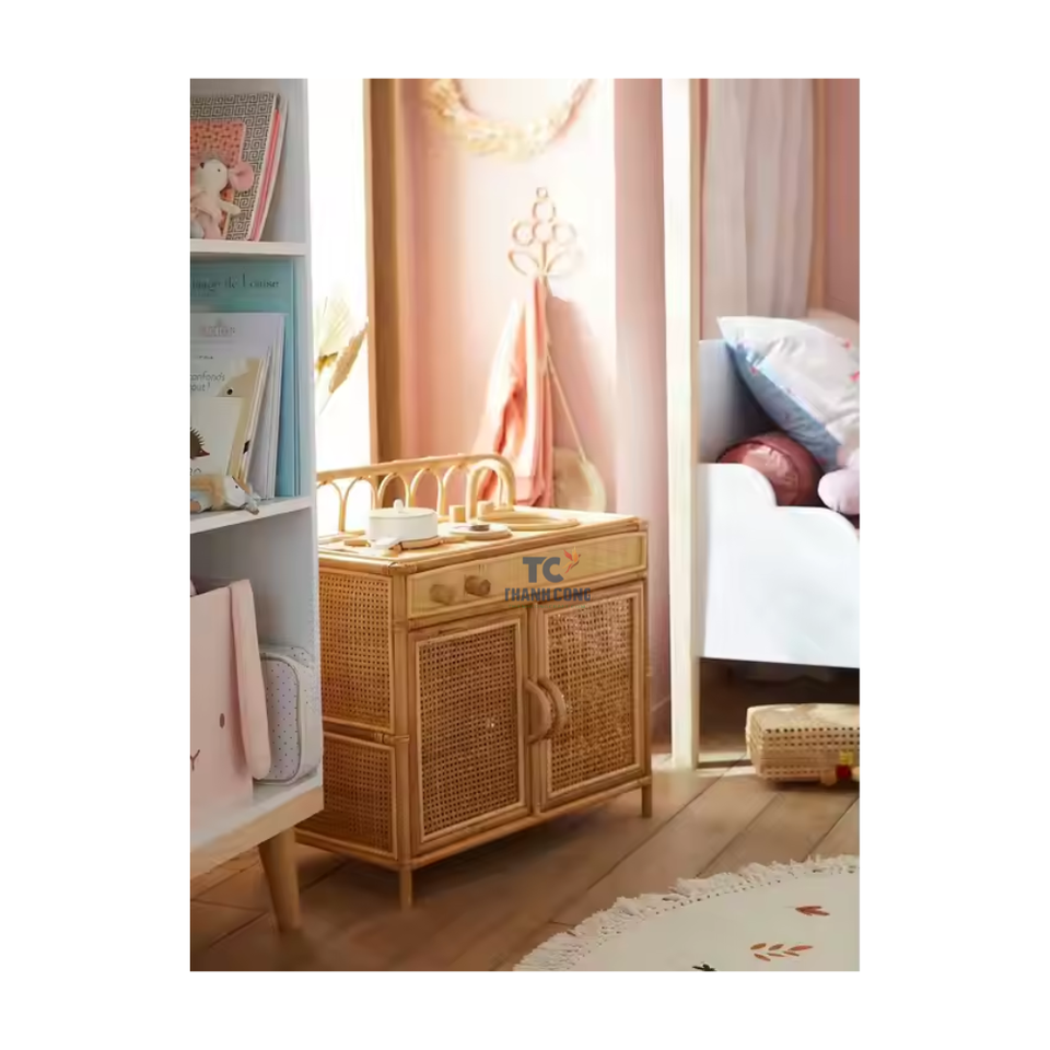 Educational Toys Elegant Design Natural Rattan Kitchen Toy Set for Kids Home Decor