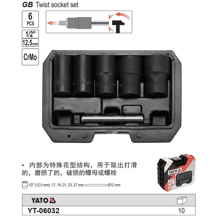 Eertek 1/2 In Nut Extractor Set 6 Piece Damaged Screw Bolt Removal Tool YT-06032