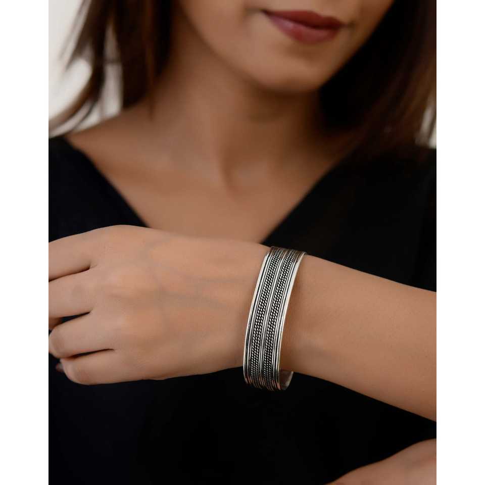 Meera Jaipur Eesha Fine Beaded Bracelets Silver Bangle